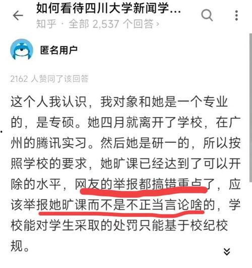 面对这些爆料,网友们纷纷发表了自己的看法。有人表示:“川大事件暴露了我国高等教育存在的问题,希望相关部门能够严肃处理。”也有人认为:“这只是个别现象,不能以偏概全。”